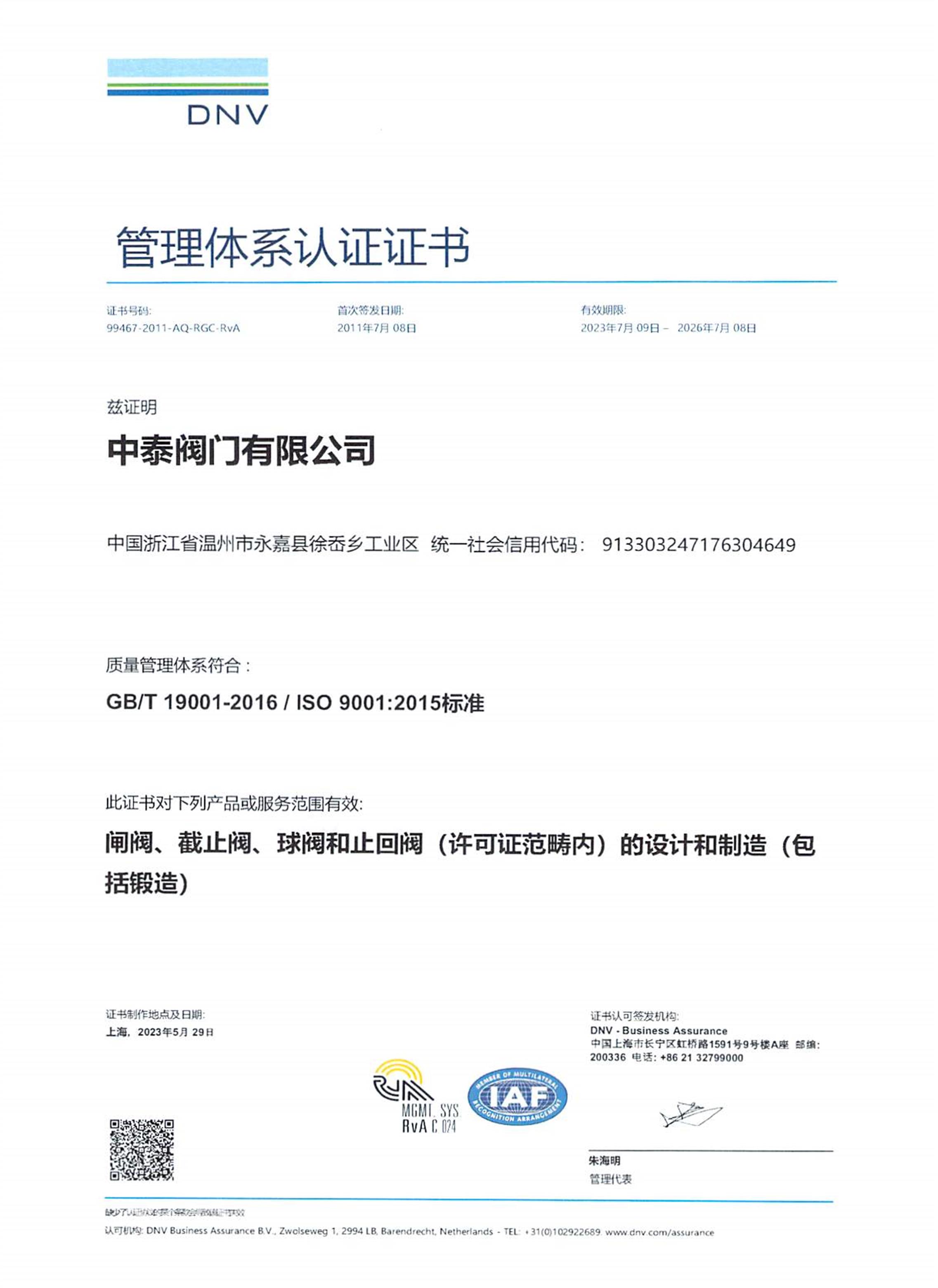 ISO9001證書